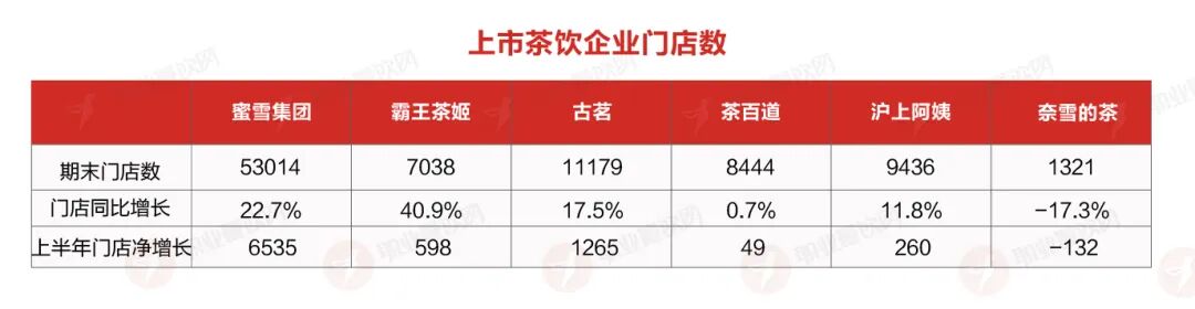 茶百道幾乎陷入停滯。上半年營收僅增長4.3%,門店數(shù)同比僅增0.7%,半年凈增49家,擴張乏力。