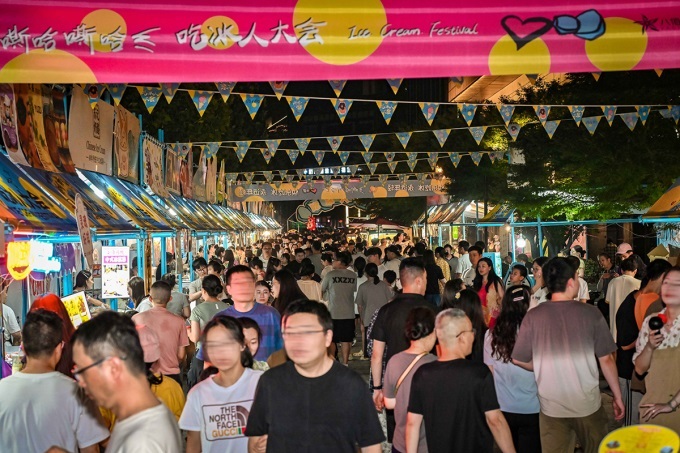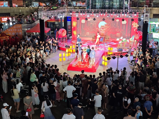 傳統(tǒng)與現(xiàn)代碰撞更具張力:古風(fēng)魚燈巡游與KPOP隨機(jī)舞蹈同框,漢服使者托流光魚燈穿行,轉(zhuǎn)身便遇年輕人隨韓流勁歌熱舞;江陰場(chǎng)“邊擼串邊看蘇超直播”的市井熱鬧,契合各年齡層“輕松過節(jié)”需求。雖元素多元,卻始終圍繞“浪漫”核心,在時(shí)空折疊中覆蓋不同客群偏好,留下獨(dú)特七夕記憶。