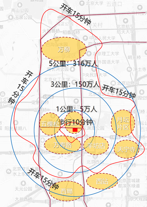 這一層面的外部因素更貼近項(xiàng)目的實(shí)際生存環(huán)境,直接左右其業(yè)績(jī)上限與客群類型。而進(jìn)行中觀層面分析的首要步驟是如何界定項(xiàng)目的輻射范圍。