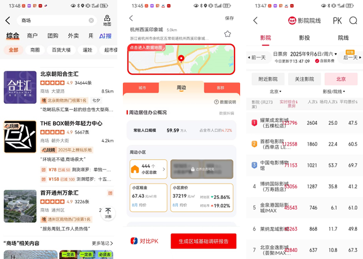 競(jìng)品項(xiàng)目的基礎(chǔ)信息、業(yè)態(tài)品牌更新動(dòng)態(tài)、營(yíng)銷活動(dòng)與市場(chǎng)口碑,則需整合來自項(xiàng)目公眾號(hào)、大眾點(diǎn)評(píng)、小紅書、抖音、貓眼專業(yè)版(看票房知商場(chǎng)人氣)等多平臺(tái)內(nèi)容,進(jìn)行交叉驗(yàn)證與內(nèi)容分析。