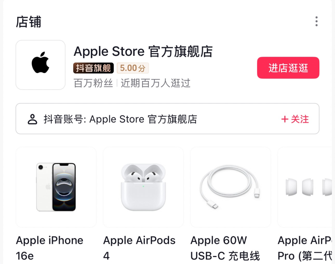 就在iPhone17發(fā)布前夜,蘋果突然宣布Apple Store官方旗艦店入駐抖音商城。