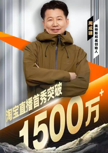 2024年11月6日,決意再出發(fā)的周成建在上?偛颗e辦了媒體發(fā)布會。也正是在這一天,作為直播新人的他向媒體公開了自己的淘寶首秀戰(zhàn)績——378萬人次觀看、成交額突破1500萬元。后在2024年11月7日,希望讓各界消費(fèi)者意識到美邦已變的周成建,則再次對外公開了“成交額破3000萬元、最高單品成交金額超400萬元”的淘寶直播二番戰(zhàn)戰(zhàn)績。