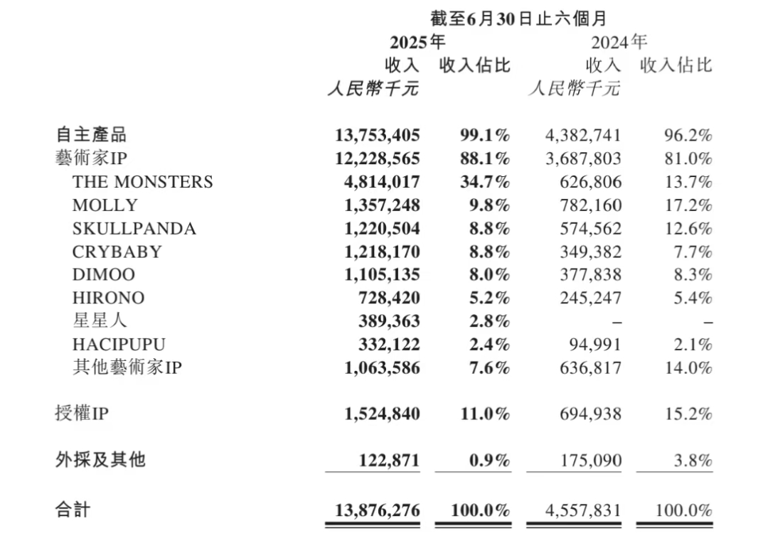 具體來(lái)看,LABUBU所在的THE MONSTERS系列,在2025年上半年?duì)I收高達(dá)48.1億元,占泡泡瑪特總營(yíng)收的近三分之一。