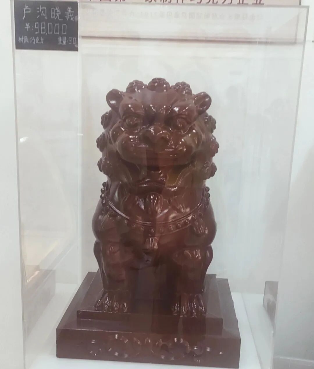 同時(shí),店內(nèi)還專門擺放了價(jià)值98000元、用巧克力制作的“盧溝曉義”石獅作品,既緊扣盧溝橋這一選址的地域特色,又打造出獨(dú)特的風(fēng)格,吸引不少游客打卡。