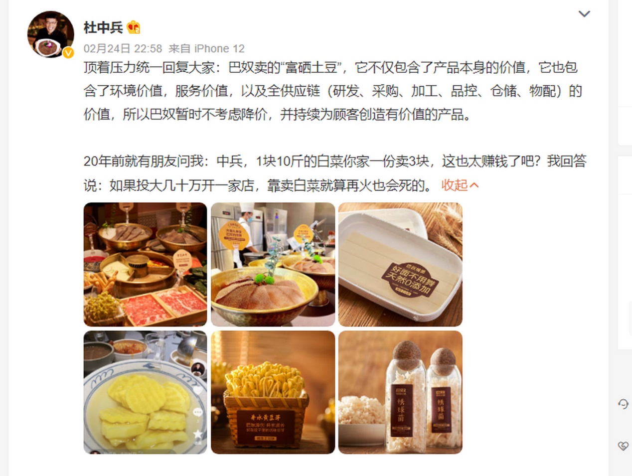杜中兵也曾直言,他知曉巴奴被吐槽“貴”這件事,但高品質(zhì)火鍋確實需要高成本的支撐,自己不會妥協(xié)而降價,因為只要降價,品質(zhì)必然要發(fā)生改變。