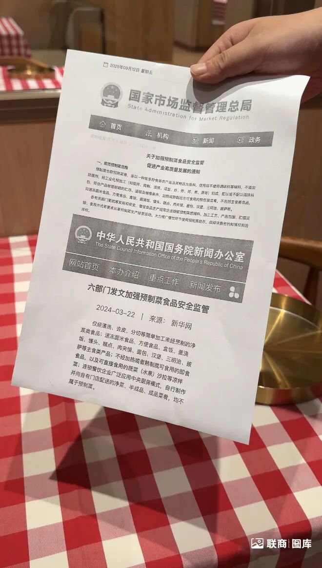 據(jù)他介紹,門(mén)店目前未對(duì)顧客主動(dòng)解釋預(yù)制菜相關(guān)問(wèn)題,“爭(zhēng)議太大,說(shuō)多了反而容易誤解,不如做好本職工作!辈贿^(guò),聯(lián)商網(wǎng)在門(mén)店看到了西貝將菜品“作業(yè)指導(dǎo)書(shū)”公示于顯著位置,同樣打印了相關(guān)文件用于釋疑。
