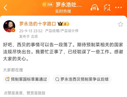 從賈國(guó)龍?jiān)谛袠I(yè)群中發(fā)信息“應(yīng)對(duì)方式有錯(cuò),改”的反思,到羅永浩“要忙正事了”的表態(tài),這場(chǎng)由消費(fèi)體驗(yàn)爭(zhēng)議引發(fā)的拉鋸戰(zhàn),最終將焦點(diǎn)引向餐飲行業(yè)“預(yù)制菜透明化”的深層命題,也為企業(yè)危機(jī)管理與公眾輿論互動(dòng)留下了思考樣本。
