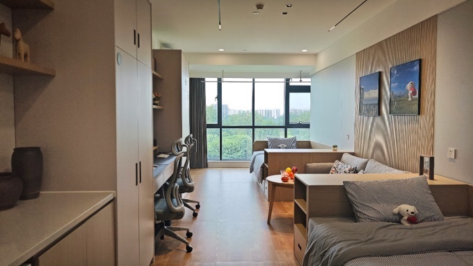 公寓家電家具一應(yīng)俱全,可實(shí)現(xiàn)拎包入住。園區(qū)內(nèi)配備了超5000平方米的商業(yè)空間,目前已入駐咖啡店、便利店、理發(fā)店、轟趴館等各種配套業(yè)態(tài)。
