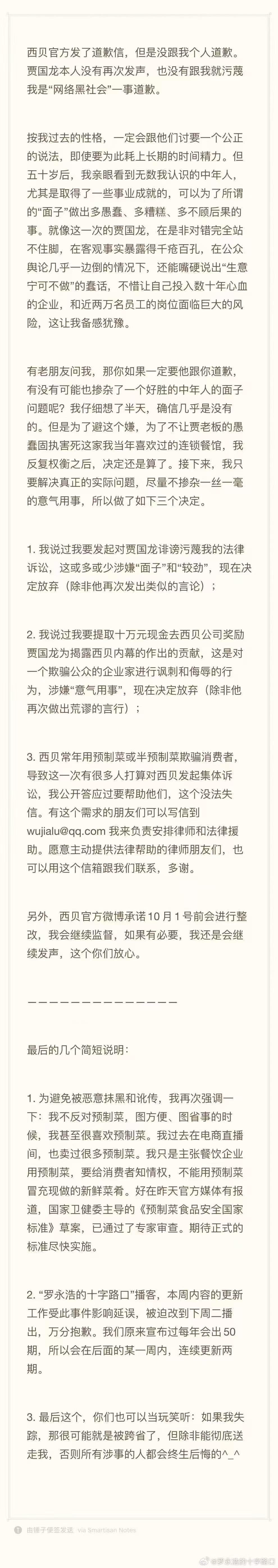 羅永浩最新發(fā)文:決定放棄追究西貝