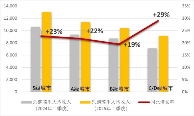 ▲今年二季度,各線城市騎手收入同比實現(xiàn)穩(wěn)定增長 圖源:美團研究院