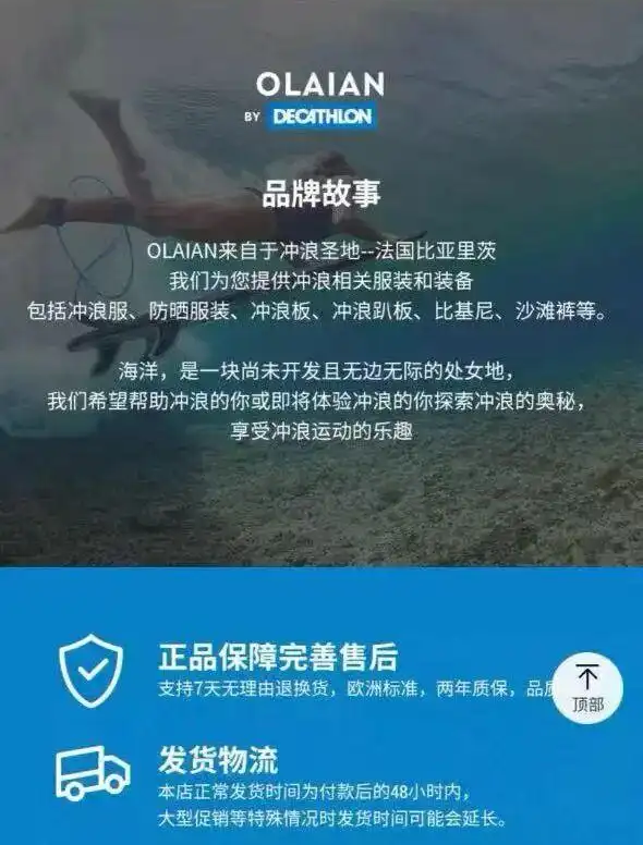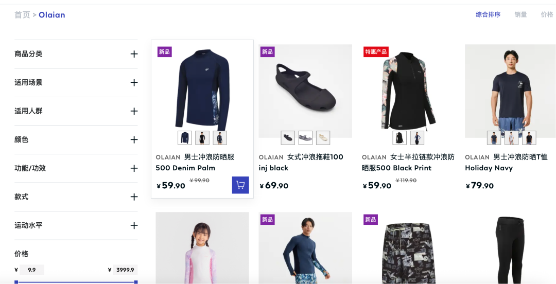 此次引發(fā)爭議的,是迪卡儂旗下名為“Olaian”的品牌。根據(jù)公開資料,Olaian是迪卡儂旗下專注于沖浪、趴板沖浪和淺水沖浪的品牌。據(jù)源Sight了解,Olaian的產(chǎn)品涵蓋了沖浪板、潛水服、泳衣、泳褲等多種品類,價(jià)格覆蓋面也較廣,介于9.9-3999元之間。
