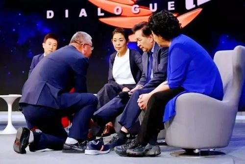 2019年張京康參加央視《對(duì)話》節(jié)目,帶著一雙足力健上臺(tái),半跪著給嘉賓換鞋,一個(gè)大孝子形象躍然紙上。
