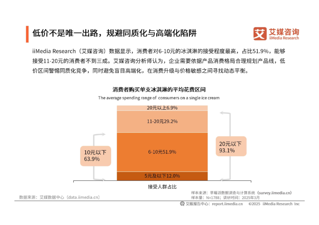 要知道,目前消費者對高價冷凍飲品的接受度十分有限。艾媒咨詢披露的數(shù)據(jù)顯示,2025年3月,93.1%的消費者只能接受價格低于20元的冰淇淋,僅6.9%的消費者可接受價格高于20元的冰淇淋。由此來看,野人先生的產(chǎn)品價格并不親民。