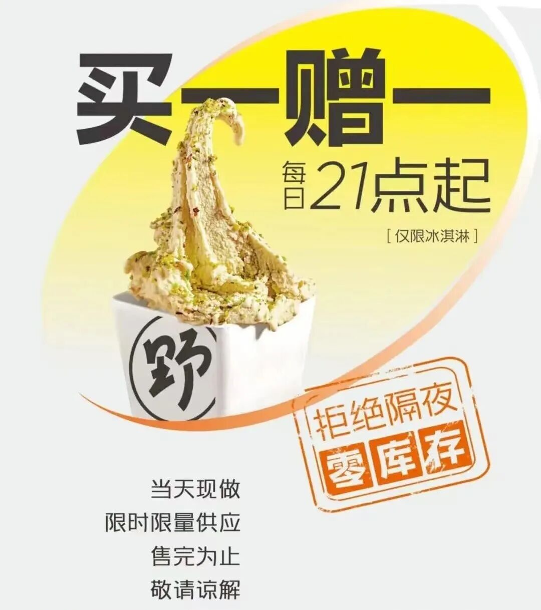 為確保門店售賣的都是當(dāng)天現(xiàn)做的冰淇淋,野人先生從去年開始推廣晚上9點(diǎn)后買一送一的活動,目的是盡可能地降低損耗。