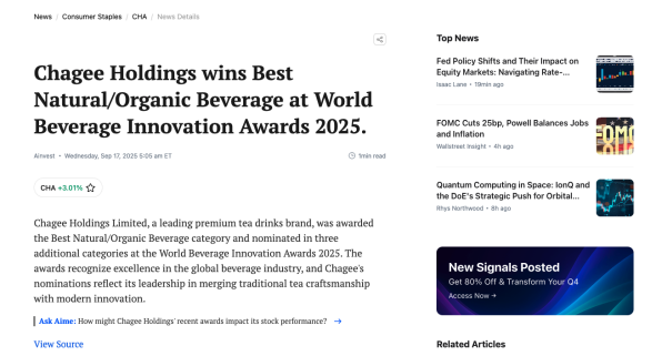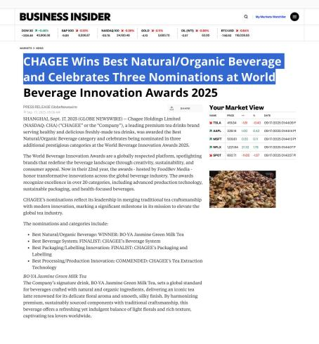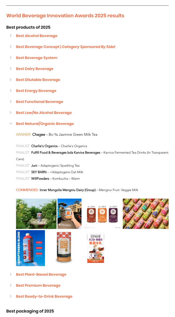 霸王茶姬獲得2025世界飲料創(chuàng)新獎(jiǎng),中國(guó)茶飲受到國(guó)際關(guān)注