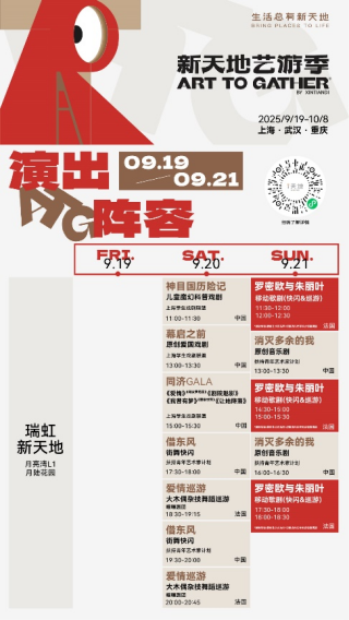 「Art To Gather 新天地藝游季」秉持“場所即劇場,日常即藝術(shù)”理念,將于9月19日至21日亮相瑞虹新天地社區(qū),推出多項獨家藝術(shù)活動與演出。