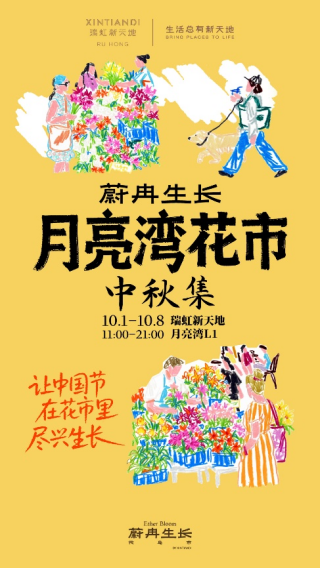 重新詮釋傳統(tǒng)花鳥市場的「蔚冉生長花鳥市 Ether Bloom」,立足城市人對自然的深層需求,將于10月1日至10月8日期間再次與瑞虹新天地聯(lián)創(chuàng)打造“蔚冉生長月亮灣花市-中秋集”。