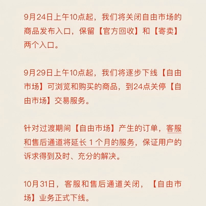 同時,黃煒表示:“自由市場是轉(zhuǎn)轉(zhuǎn)的開端,承載了初創(chuàng)團(tuán)隊的心血和第一批用戶的信任;但同時,它也為網(wǎng)絡(luò)詐騙、灰色交易提供了空間,我們很難找到妥當(dāng)?shù)姆椒ǜ纳平灰纂p方的糾紛。在這里,要向所有受影響的自由市場用戶表示深深的歉意!