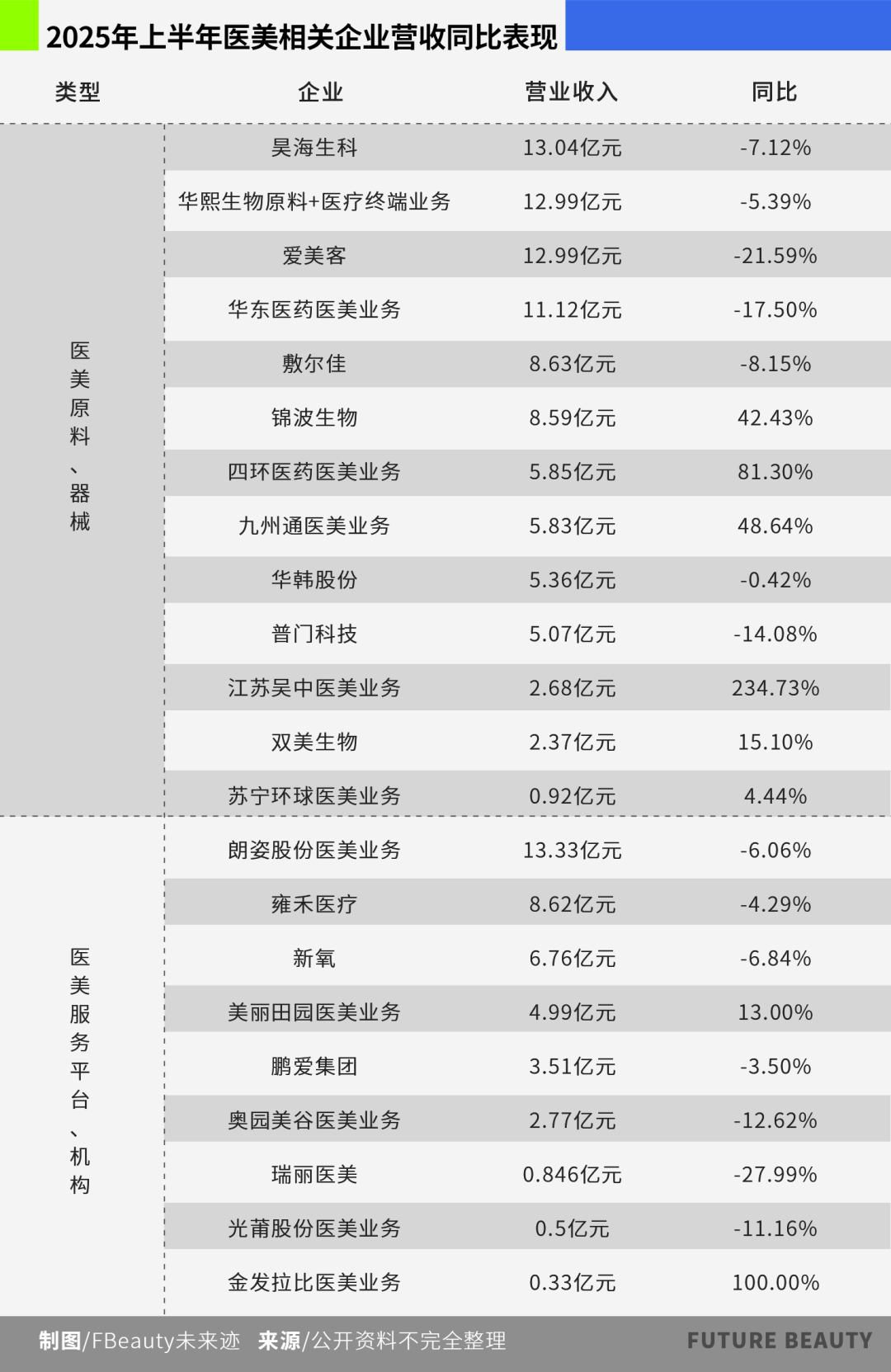 從企業(yè)類型來看,醫(yī)美行業(yè)的“寒冬”似乎已經貫穿上下游。不僅醫(yī)美原料、器械研發(fā)的上游企業(yè)業(yè)績遇冷,愛美客、昊海生科、敷爾佳等企業(yè)均出現營收與凈利潤的雙下滑;醫(yī)美服務平臺、機構中的新氧、瑞麗醫(yī)美等,在營收下滑同時,凈利潤還面臨一定程度的虧損。