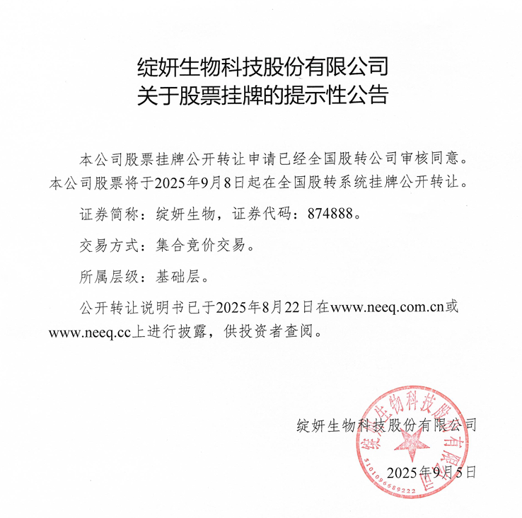 綻妍生物正式在新三板掛牌