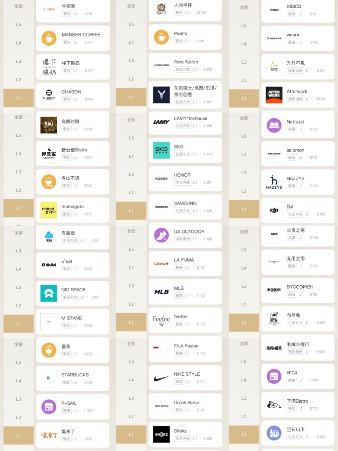 開業(yè)臨近,項目的品牌也悉數(shù)曝光,從B2至5F分別如下: