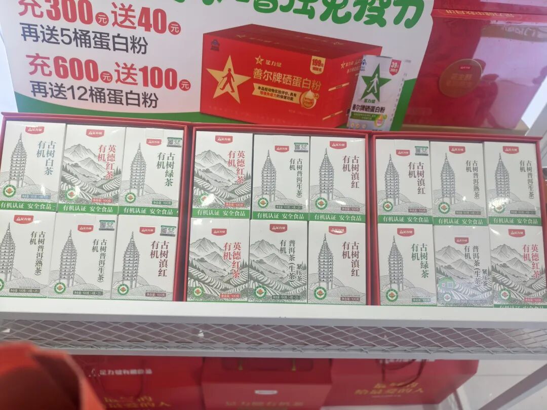 最近,我發(fā)現(xiàn)鄭州的多個社區(qū)崛起了一家“足力健有機食品”,不僅賣飲品,還賣茶葉。