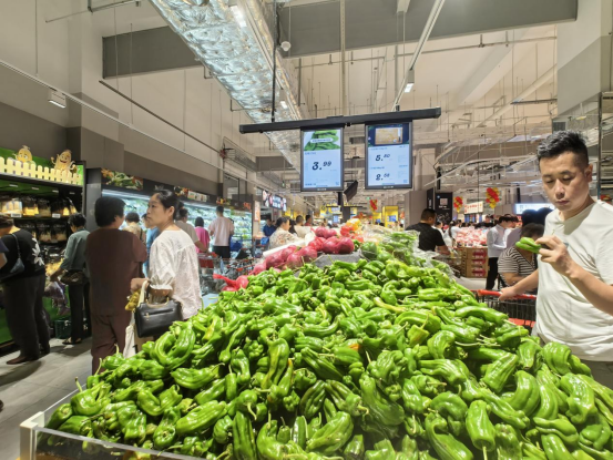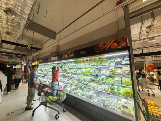 在蔬菜、水果、肉類及干貨的初級(jí)商品經(jīng)營(yíng)上,昆山店采取了散裝為主、散包結(jié)合的方式。部分包裝化的品項(xiàng)集中專區(qū),適配線上快速揀貨的需求。