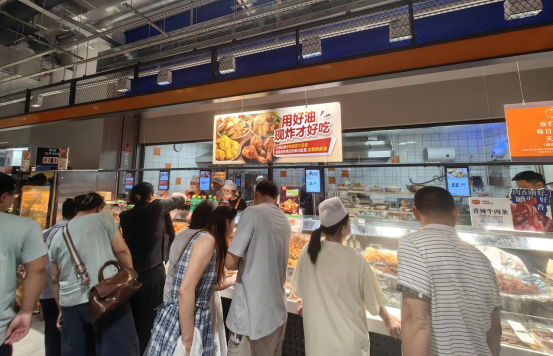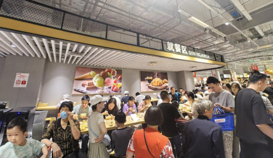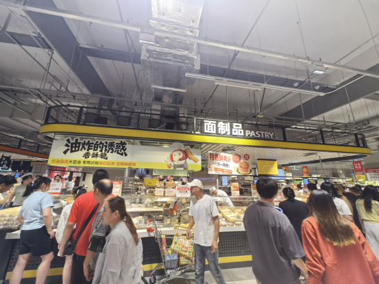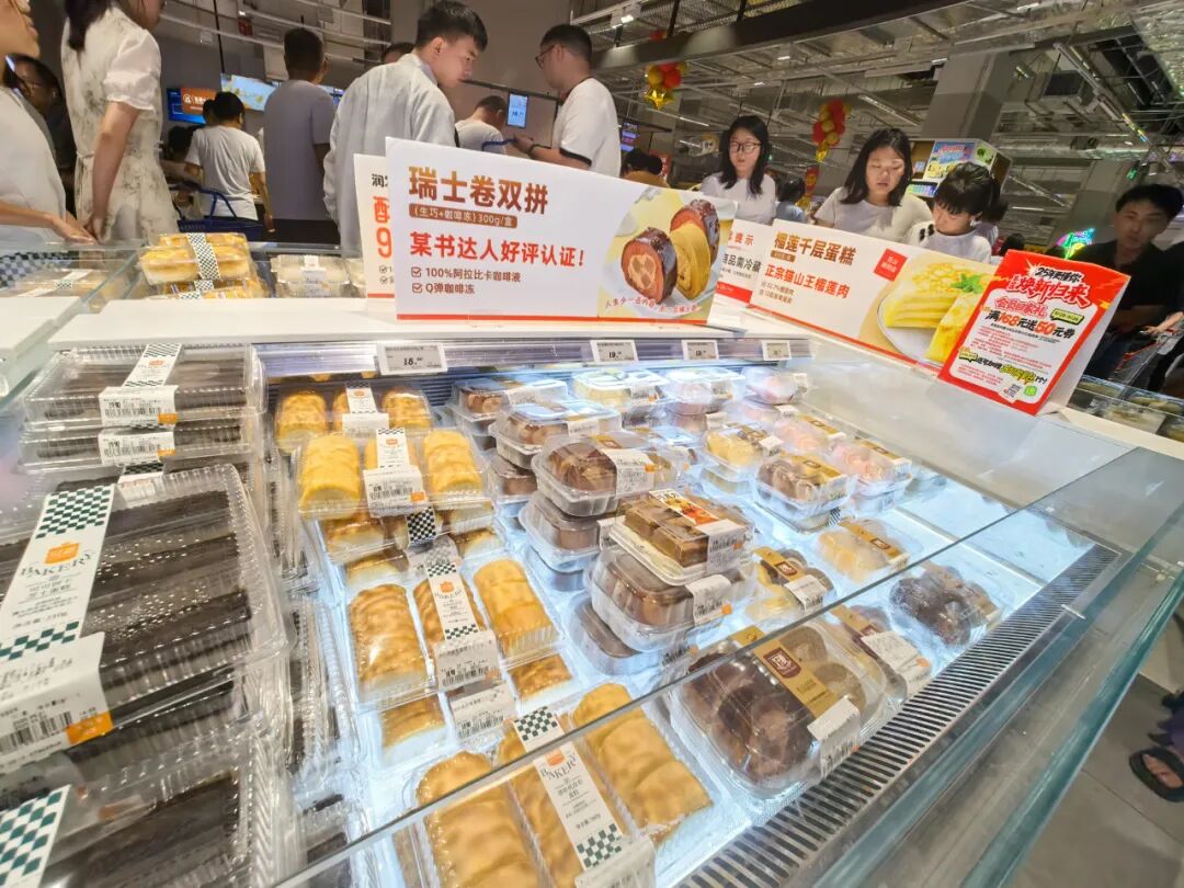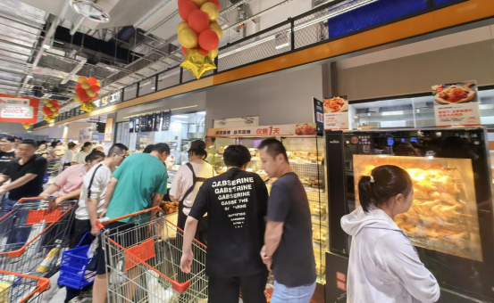 在昆山店,烘焙、熟食加工及潤(rùn)發(fā)食堂片區(qū)成了人氣頂流,煙火氣十足。