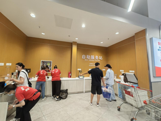 比如服務(wù)項(xiàng)目。在線外業(yè)門(mén)店設(shè)置了服務(wù)站,集合了取冰、免費(fèi)茶飲、公平秤、洗手池等等。