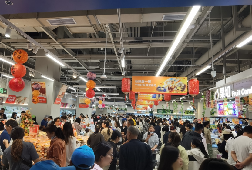 9月25日清晨,宿遷吾悅廣場(chǎng)外已排起了長(zhǎng)隊(duì),市民們紛紛等待著盒馬鮮生首店的開(kāi)業(yè)。據(jù)悉,這是盒馬鮮生首次進(jìn)駐劉強(qiáng)東的老家宿遷,也是盒馬鮮生繼9月20日淮安首店開(kāi)業(yè)后,在江蘇進(jìn)駐的第11座城市。而距離京東在此布局折扣超市僅過(guò)去27天。門(mén)店開(kāi)門(mén)瞬間,市民涌向海鮮區(qū)的場(chǎng)景,也正是這場(chǎng)宿遷本地消費(fèi)競(jìng)逐的縮影。