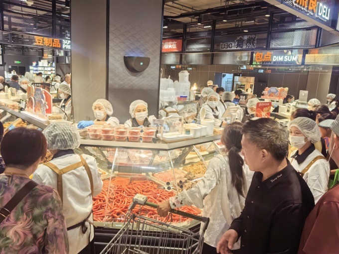 熟食區(qū)主推奧爾良烤雞、韓式炸雞、進(jìn)口三文魚、雙匯熱鹵甜腸,更契合綦江飲食口味推出膠原滿滿的香辣豬蹄,軟糯Q彈、麻辣鮮香,以及香辣豬耳朵、YH涼拌菜、麻辣面爪等本土風(fēng)味產(chǎn)品。