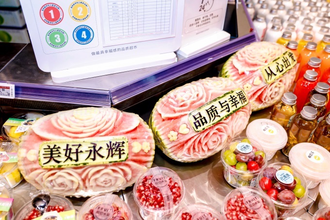 在食品安全方面,門店嚴(yán)格執(zhí)行“468”鮮度管理,果切超4小時八折、6小時六折、8小時下架,部分對鮮度要求較高的葉菜、肉禽、水產(chǎn)等每日定時折價,不出售隔夜商品。所有商品嚴(yán)格索票索證、源頭可溯,確保食品安全。