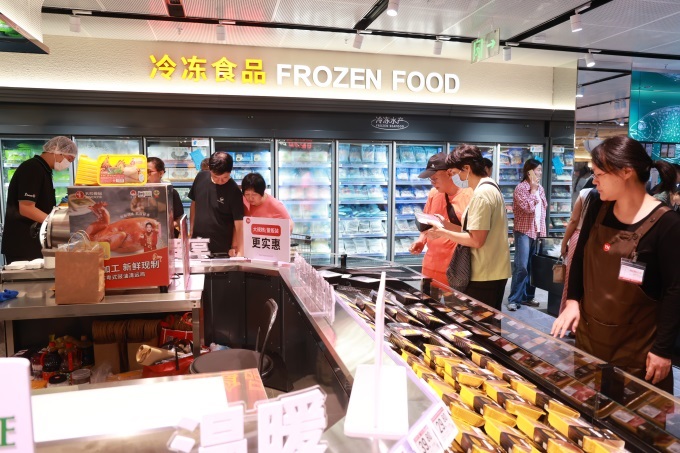 水產(chǎn)肉禽區(qū)新增“零土腥味、零寄生蟲”的星空系列魚、潮汕牛肉、有機鮮雞副及葉黃素雞蛋,引入穗香雞、江村黃雞等嶺南地標禽類,讓本土鮮味融入日常。