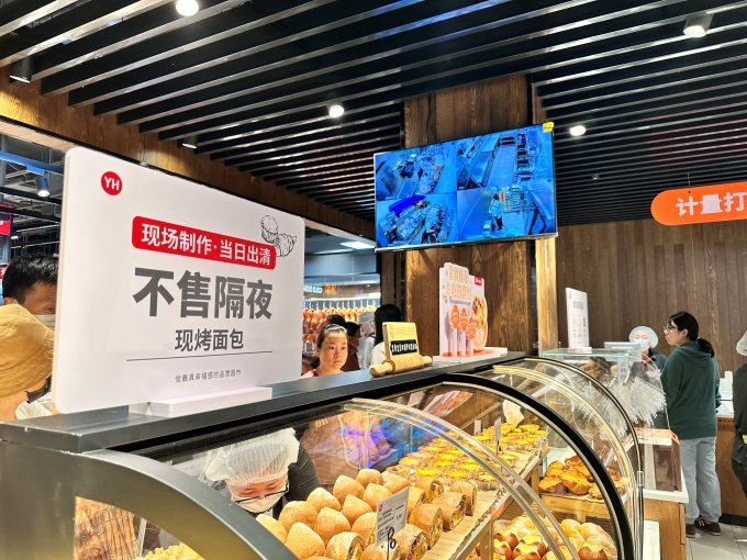 烘焙區(qū)與中糧、安佳等優(yōu)質(zhì)供應商合作,現(xiàn)烤現(xiàn)售全新口味“金秋桂花豐收的喜悅”歐包、“核桃滿滿”乳酪面包等產(chǎn)品,香氣四溢,吸引眾多顧客駐足。