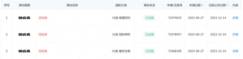 企查查顯示,武漢中百便利店有限公司自2023年6月開始注冊“百嶼森”商標,今年7月更是密集申請。