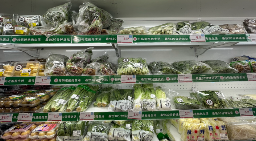 其中,生鮮果蔬區(qū)占據(jù)門店近30%的陳列面積,每日上架葉菜、根莖類蔬菜超30種,生鮮預包裝替代傳統(tǒng)“毛菜”,門店無需分揀包裝。
