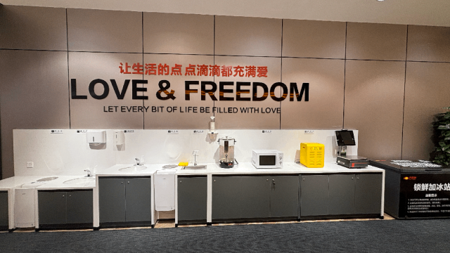 與此同時(shí),門(mén)店專(zhuān)門(mén)設(shè)置了便民服務(wù)區(qū)和顧客休息區(qū),洗手臺(tái)、紙巾、烘手器、護(hù)手霜、直飲水、一次性紙杯、微波爐、公平秤、加冰站等便民設(shè)施一應(yīng)俱全,并隨季供應(yīng)免費(fèi)茶水。
