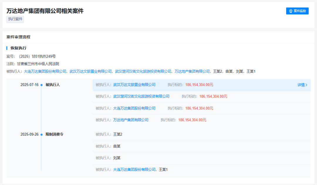 兩大資方入場(chǎng)兩年多時(shí)間,依然未能盤活武漢中央文化區(qū)文旅項(xiàng)目。大致可以推斷,金融機(jī)構(gòu)重新對(duì)王健林、萬(wàn)達(dá)集團(tuán)及兩家項(xiàng)目公司恢復(fù)執(zhí)行。