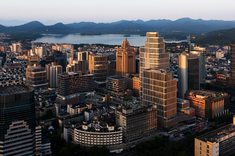實拍的杭州恒隆廣場,從塔樓高層可以遠眺西湖