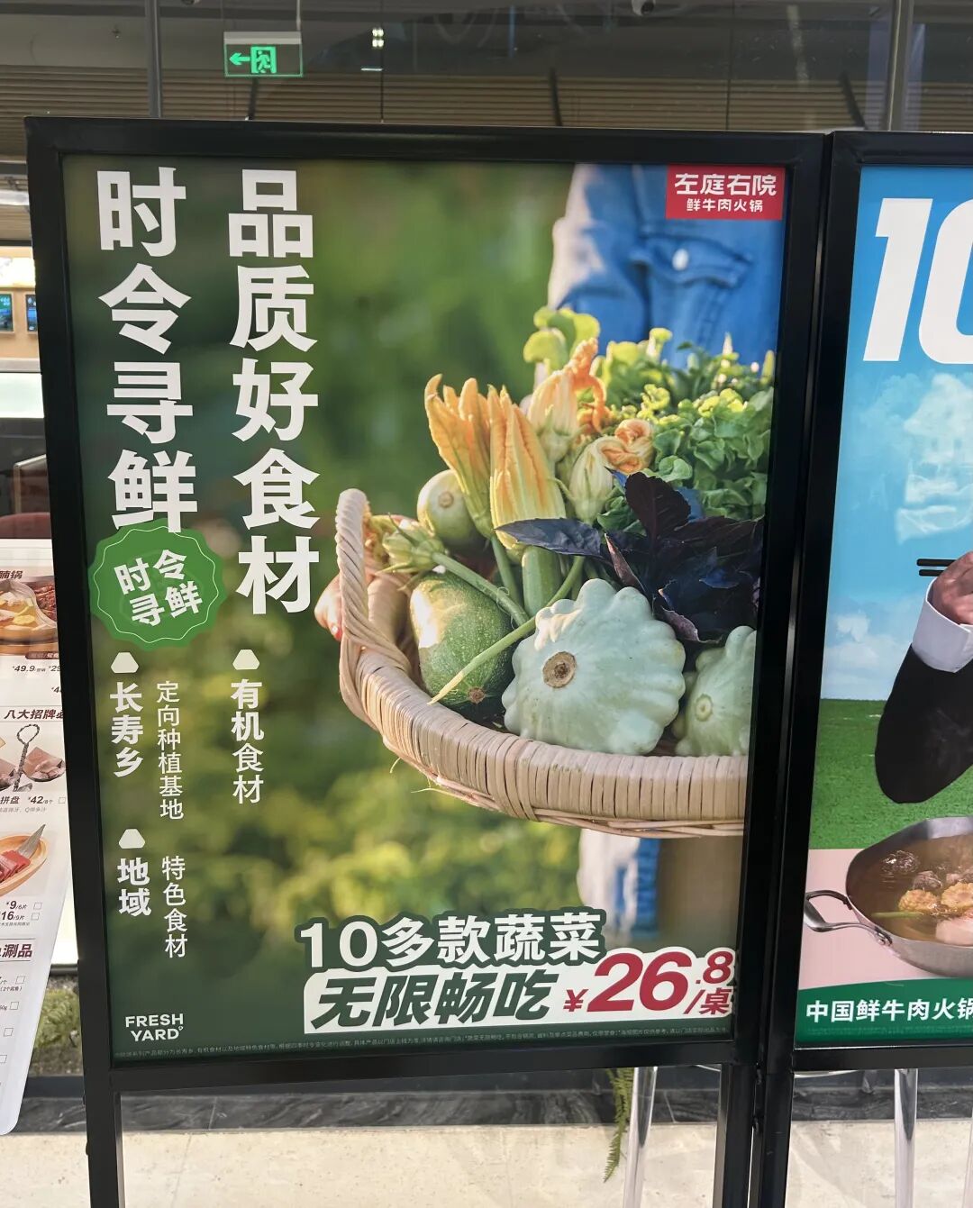 在此背景下,左庭右院推出 “長壽鄉(xiāng)蔬菜自助” 的策略顯得尤為克制。其關(guān)鍵不在于 “牛肉降價”,而在于 “蔬菜升維”—— 通過引入 “長壽鄉(xiāng)” 這一具備天然健康背書的地域標簽,為自助品類注入高價值認知。