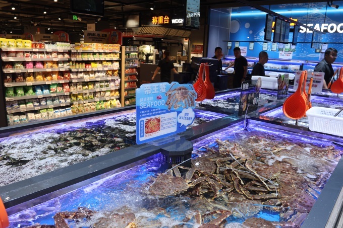 水產(chǎn)類主推佩戴官方溯源蟹扣、保真;畋r的陽澄湖大閘蟹,以及源自挪威純凈深海、確保E+級高品質(zhì)的冰鮮三文魚,為中秋家宴提供上佳之選。