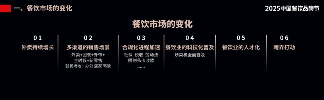 我們先來看看餐飲市場的變化,首先是外賣,未來幾年還會(huì)持續(xù)增長,所以我們要持續(xù)關(guān)注外賣,F(xiàn)在,我們外賣收入已經(jīng)占堂食的一半了。如果你不做外賣的話,估計(jì)就更難賺錢了。