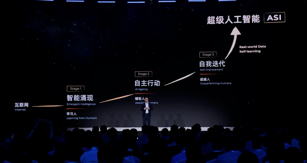 第一階段是讓AI 通過學(xué)習(xí)海量人類知識(shí)實(shí)現(xiàn) “智能涌現(xiàn)”,目前這一步已初步達(dá)成;第二階段將重點(diǎn)突破工具使用與編程能力,讓 AI 具備自主行動(dòng)的能力;最終階段則是通過連接物理世界、掌握自主學(xué)習(xí)能力,實(shí)現(xiàn)超越人類的 ASI 終極目標(biāo)。
