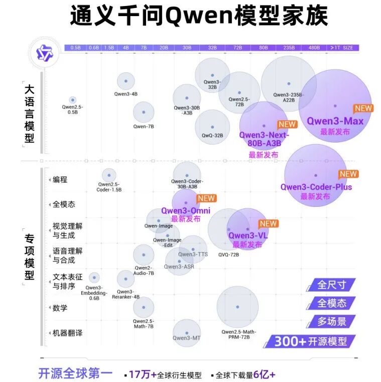 大模型方面,通義最新發(fā)布7 款模型更新,覆蓋大語(yǔ)言模型、多模態(tài)模型、編程模型等領(lǐng)域,在智能水平、Agent 工具調(diào)用、Coding 能力、深度推理、多模態(tài)等方面實(shí)現(xiàn)突破。