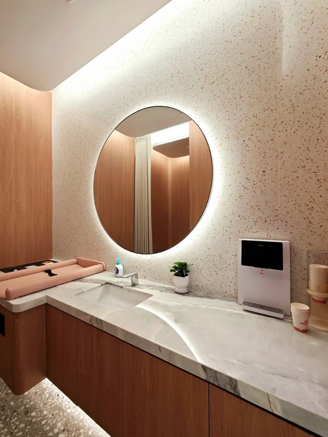 其他設(shè)施,我們還特別關(guān)注到室內(nèi)的動(dòng)態(tài)指引系統(tǒng)、電梯間、洗手間、提供mama care服務(wù)的母嬰室、停車場等,它們呈現(xiàn)出的整體品質(zhì),并不亞于定位「城市旗艦」的多個(gè)今年新開業(yè)萬象城,甚至在部分維度品質(zhì)更高。