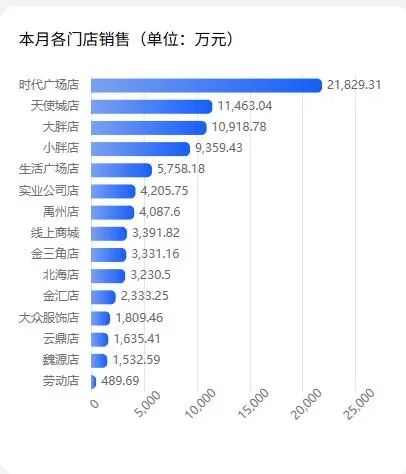 從本月各門店表現(xiàn)來看,胖東來時代廣場店依然斷檔式領(lǐng)先,本月銷售額約2.18億元,天使城店、大胖店、小胖店則分別以約1.14億元、約1.09億元、約9359萬元的銷售額緊隨其后。