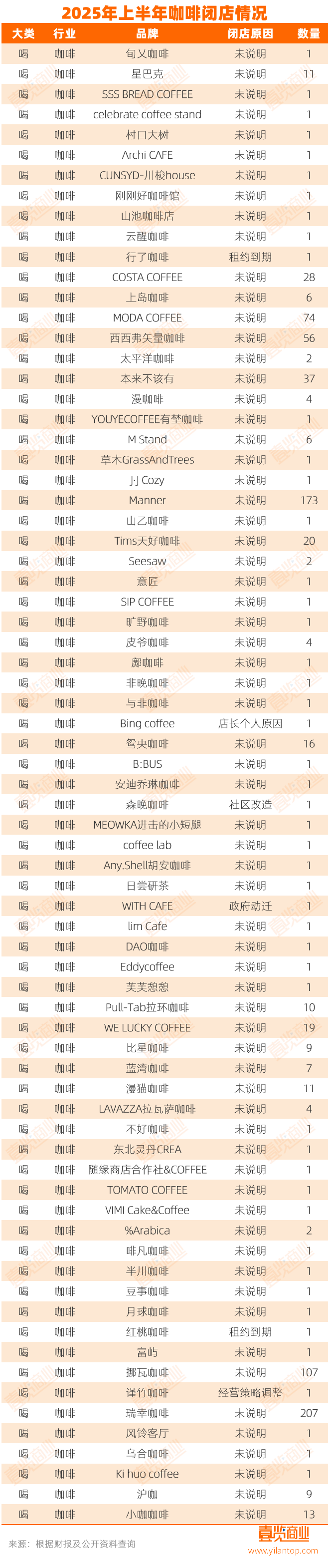今年上半年閉店數(shù)量最多的幾家品牌集中在中腰部和曾經(jīng)的網(wǎng)紅賽道中。