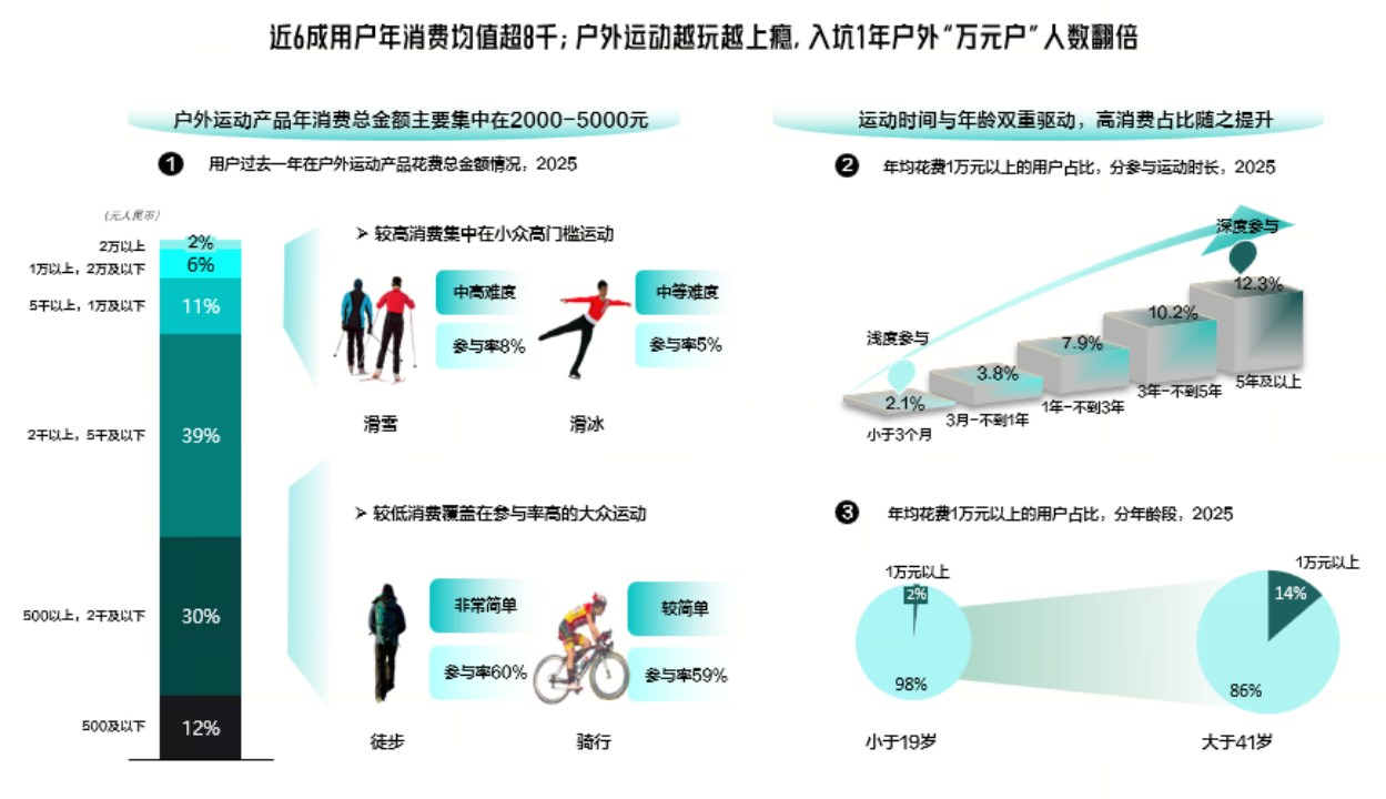 戶外運(yùn)動(dòng)滲透城市、山野、水域、冰雪四大圈層,6成用戶年消費(fèi)超8000元