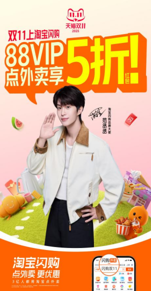 淘寶閃購雙11推88VIP外賣五折,免單紅包1000萬份