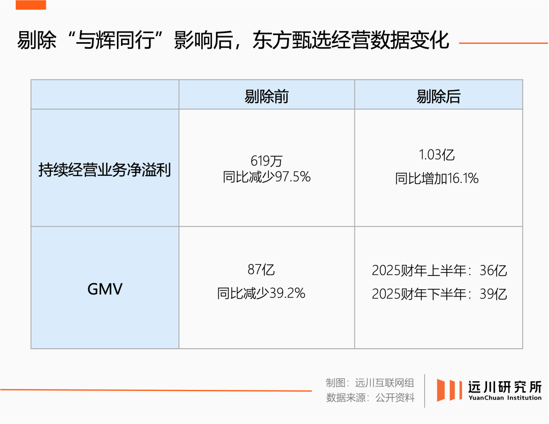 從結(jié)果來(lái)看,東方甄選的種種努力沒(méi)有白費(fèi)。2025財(cái)年下半年(2024.12.1-2025.5.31),東方甄選的持續(xù)性經(jīng)營(yíng)業(yè)務(wù)扭虧為盈,剔除前兩個(gè)月董宇輝在職期間的貢獻(xiàn),GMV甚至環(huán)比增長(zhǎng)了三個(gè)億。
